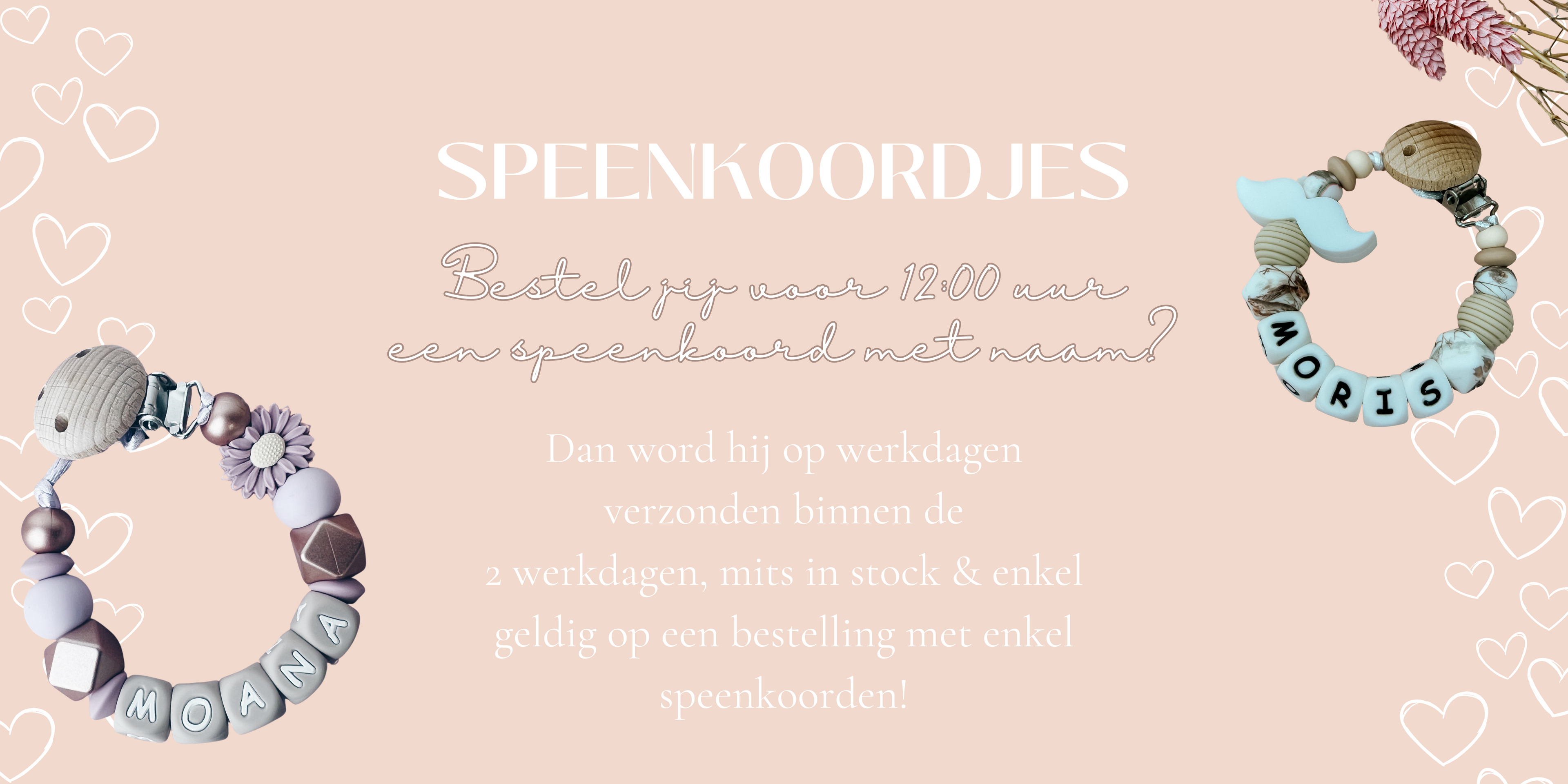 • Gepersonaliseerde speenkoorden met de naam van de baby.