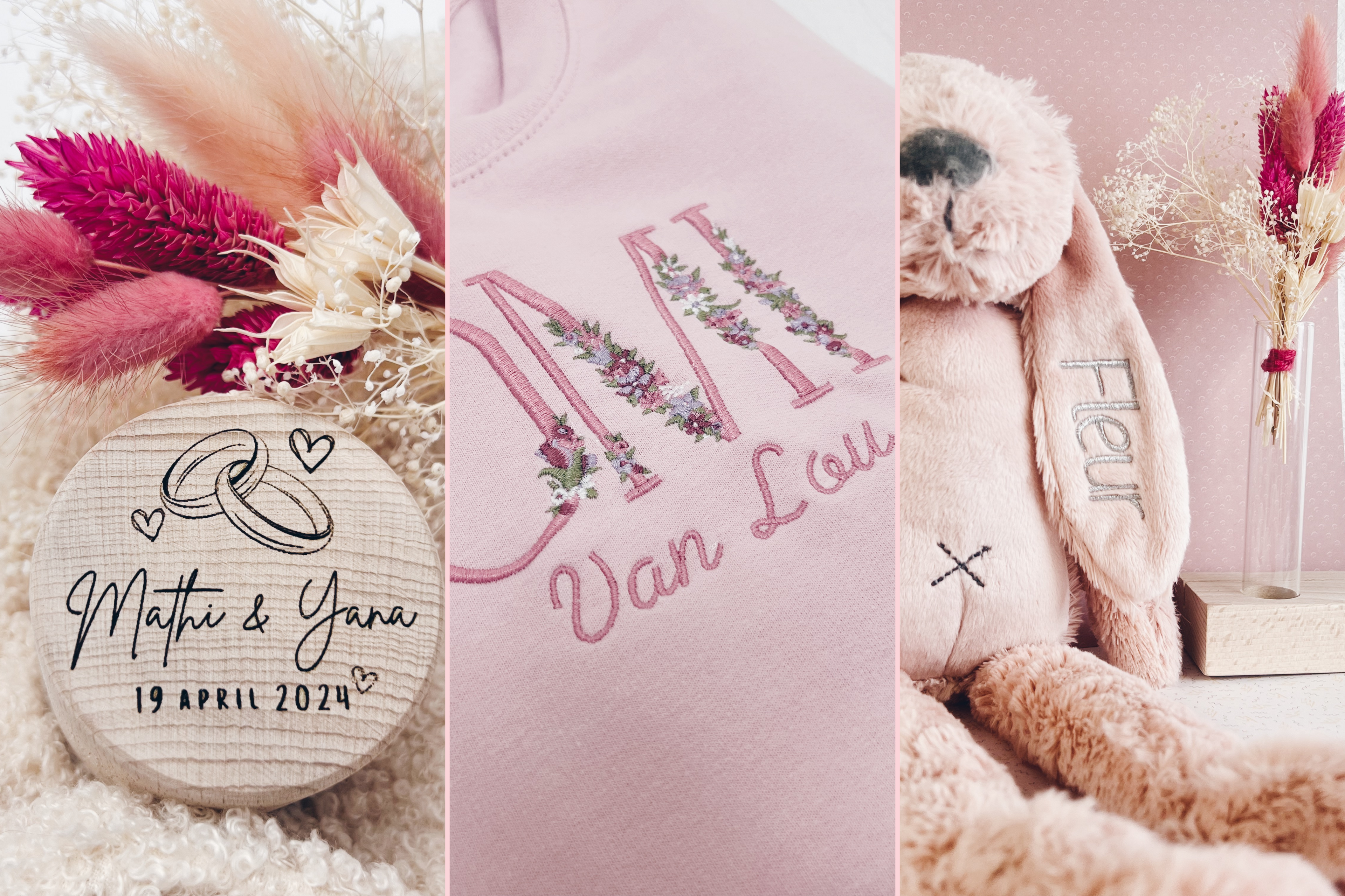 Maar ook voor andere gelegenheden ben je bij ons aan het juiste adres. We hebben een breed scala aan artikelen voor jong en oud, zoals gepersonaliseerde sleutelhangers, sieraden, kleding en woonaccessoires.