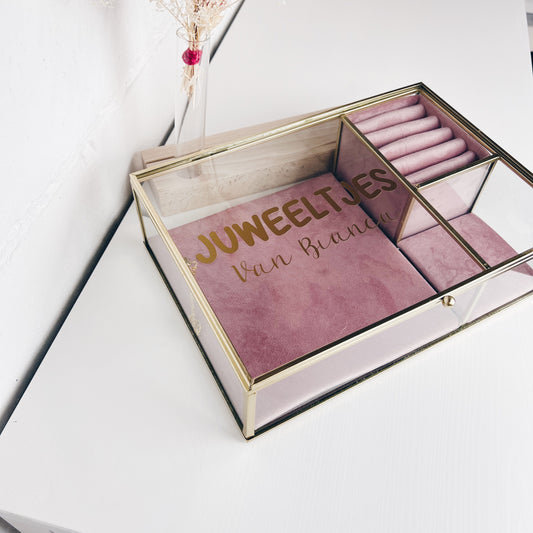 BLACK WEEK SALE - LUXUEUZE GOUDEN GLAZEN JUWELENDOOS - gepersonaliseerd