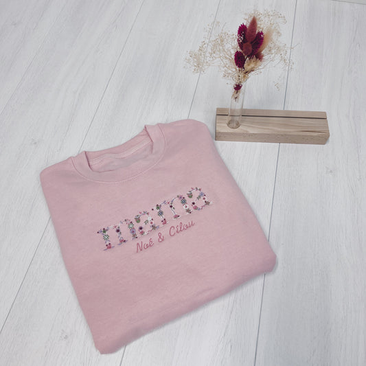 Mama bloemen trui - met namen van de kinderen - GEBORDUURD