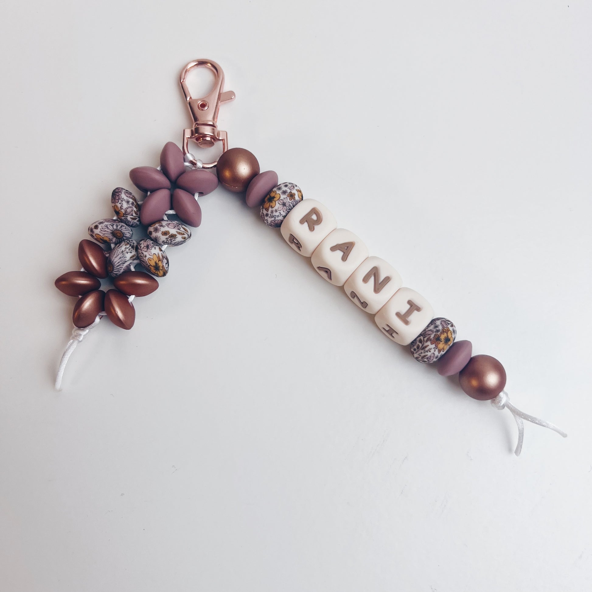 Maak je sleutelbos extra persoonlijk met deze prachtige Waved sleutelhanger met siliconen kralen en naam.