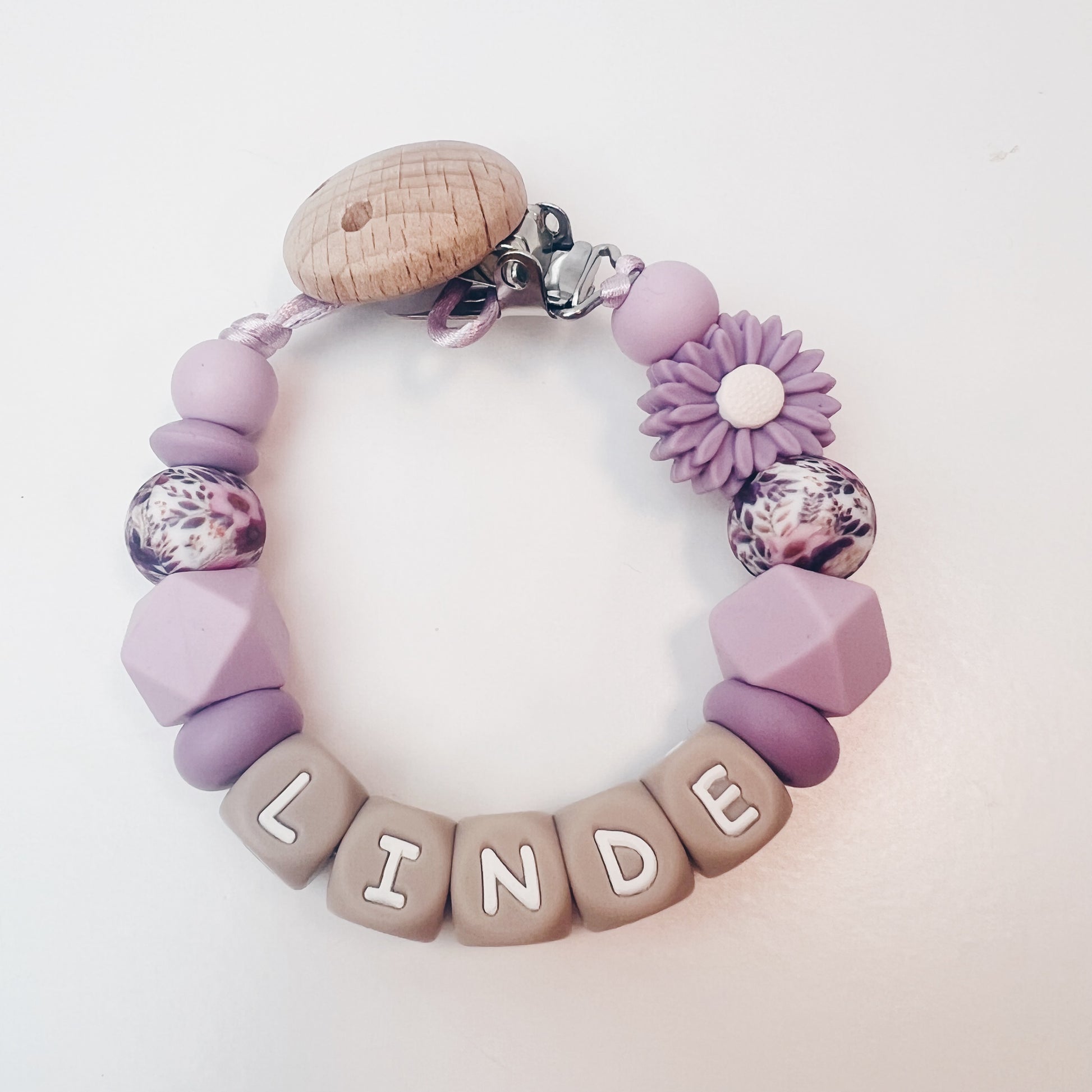 De kralen zijn gemaakt van zachte, 100% veilige silicone en zijn gemakkelijk schoon te maken met een vochtig doekje. Bevestigd met een stevige clip die eenvoudig aan kleding, wagen of doekje vast te maken is.